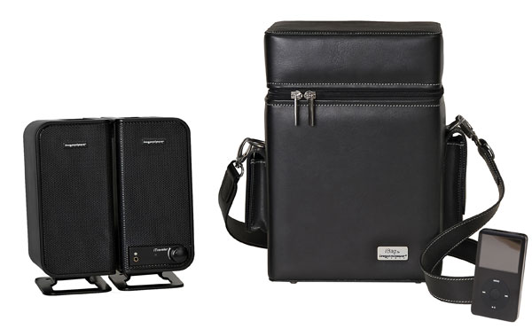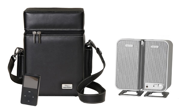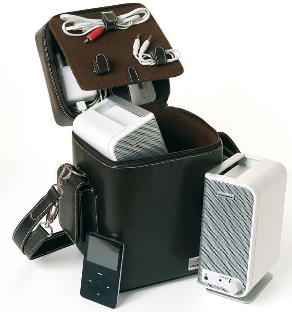 Caratterizzati da un design stilizzato i due speaker di iTraveler Sound System possono funzionare anche tramite batterie per una autonomia di oltre 20 ore, dispongono di due ingressi per due sorgenti diverse, inoltre sono forniti con l’elegante iBag, una borsa di trasporto impermeabile che permette di trasportare ovunque non solo gli iTraveler Sound Systema ma anche tutti gli accessori, alimentatori e cavi necessari per l’utente, inclusa una tasca per iPhone/iPod.