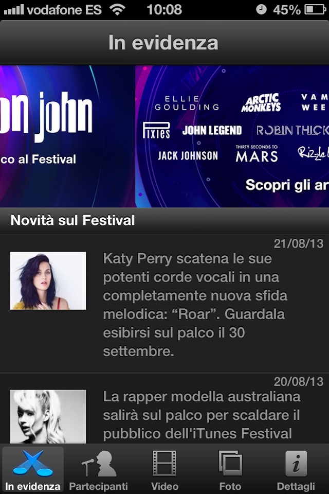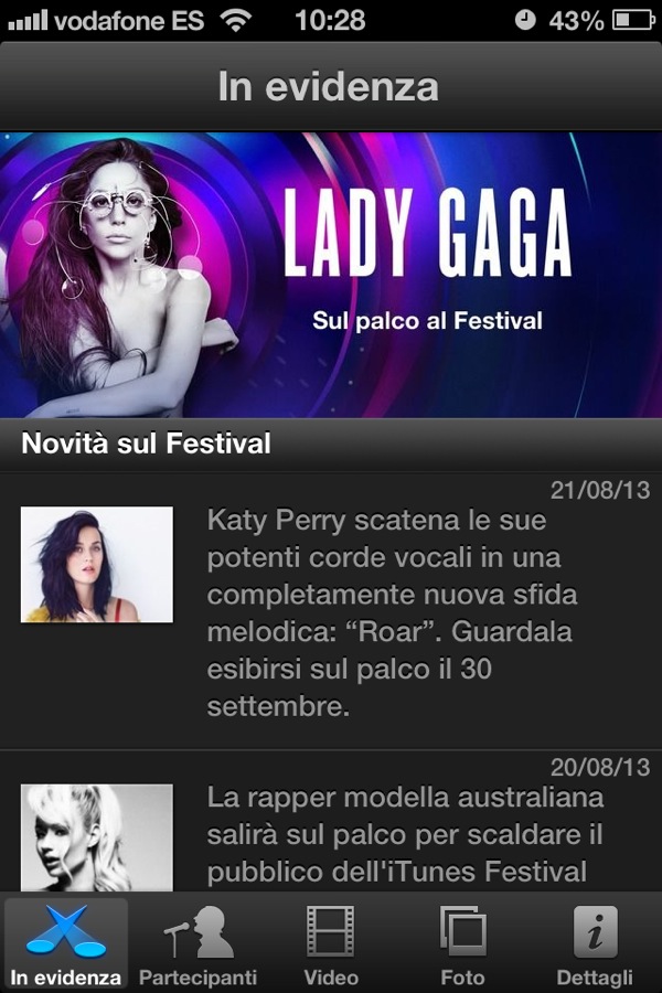 Nella sezione Partecipanti invece è possibile scorrere l’elenco fotografico completo di tutti i 60 artisti e gruppi che parteciperanno all’iTunes Festival 2013. Anche qui con un tap è possibile accedere a una presentazione sintetica del curriculum dell’artista, con i lil diretti ai brani e agli album su iTunes Store. Le sezioni Video e Foto permetteranno di visualizzare gratis i video in diretta delle esibizioni live che proseguiranno dal primo giorni di settembre per tutto il mese, lo stesso per la sezione Foto.
