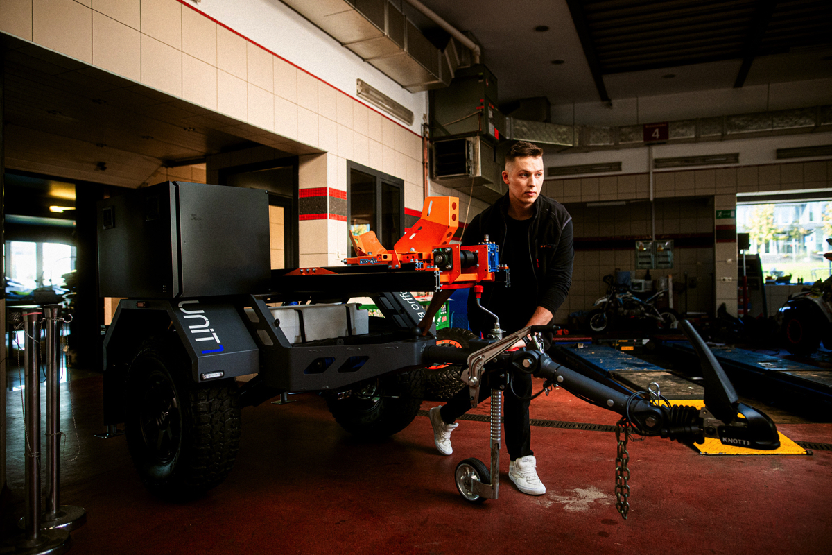 L’interesse di Piotr per la progettazione di rimorchi è iniziato con i viaggi in fuoristrada con la famiglia nei Balcani e nei Pirenei. Ha poi trascorso i successivi 10 anni e il corso di laurea e master a progettare rimorchi per il soccorso in grotta e fuoristrada, prima di creare The Life Chariot.