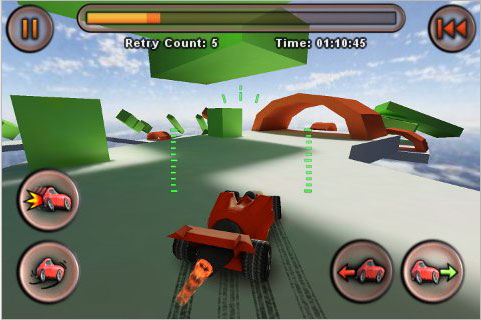 La nostra super vettura è controllata grazie all’accelerometro, sia quando le ruote toccano la pista, sia quando occorre correggere velocità e angolazione mentre saltiamo da un punto all’altro per riuscire ad arrivare sani e salvi alla meta. Le 36 piste disponibili e le due modalità di gioco offrono ore di divertimento, senza contare ovviamente l’effetto meraviglia di quando mostreremo il nostro touch o iPhone agli amici con il gioco in funzione. Sconsigliato ai deboli di cuore, da prendere in considerazione per una buona dose di adrenalina e divertimento: la dimostrazione nel video più in basso. Jet Car Stunts è disponibile su App Store a 1,59 euro.