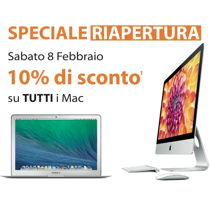 IJuice [sponsor] di Genova riapre oggi, sabato 8 febbraio, dopo alcune settimane di chiusura per i lavori di rinnovo e per festeggiare l’evento a partire  è possibile acquistare tutti i nuovi computer della Mela, desktop e portatili, con il 10% di sconto sul prezzo di listino.