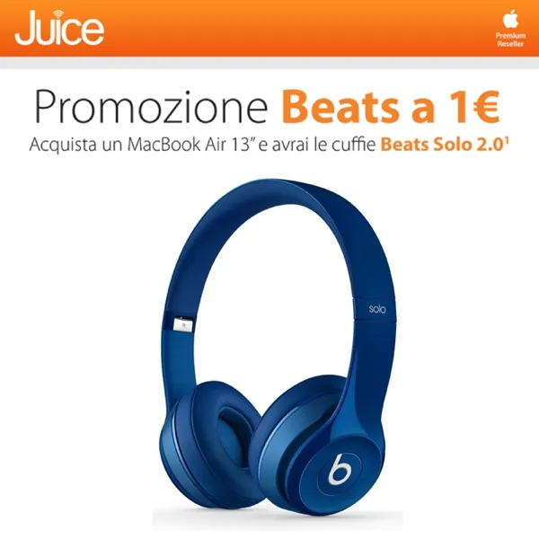 Home » Sconti speciali » Juice: cuffie Beats Solo 2.0 a 1 euro acquistando MacBook Air 13”