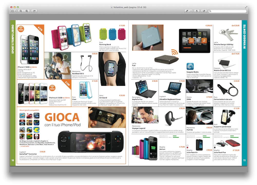 Tra le numerose offerte del volantino Juice segnaliamo LaCie Fuel da 1 TB a 209,90 euro, il nuovo disco fisso completamente portatile che ingra in Wi-Fi e una batteria per accedere sempre e ovunque a file, foto, film e media da computer ma anche da iPhone e iPad. Permette di collegare tramite Wi-Fi fino a 5 dispositivi in contemporanea d è in grado di funzionare per 10 ore. Ancora lo scanner portatile professionale Brother DS-820W a 229,00 euro che permette di effettuare scansioni a colori in solamente 8 secondi sempre e ovunque, per inviare al volo su iPhone e iPad.