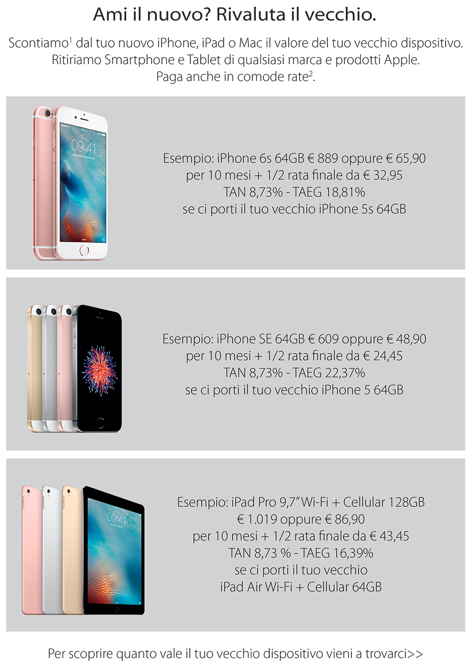 Da sempre Juice propone il servizio di valutazione e ritiro dei vecchi iPhone, iPad e Mac, recentemente esteso anche a smartphone e tablet di qualsiasi marca. Il valore dell’usato viene detratto dal prezzo del nuovo dispositivo acquistato che può essere pagato anche a rate.