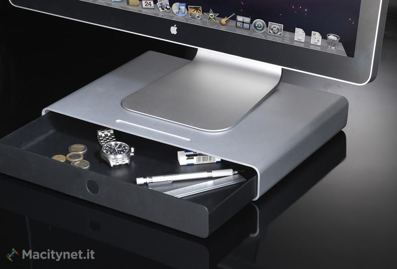 Vi piace l’alluminio, volete alzare il vostro iMac di qualche centimetro, avete necessità di ordine sulla scrivania? Andate su Amazon.it e date un’occhiata a JustMobile Drawer.