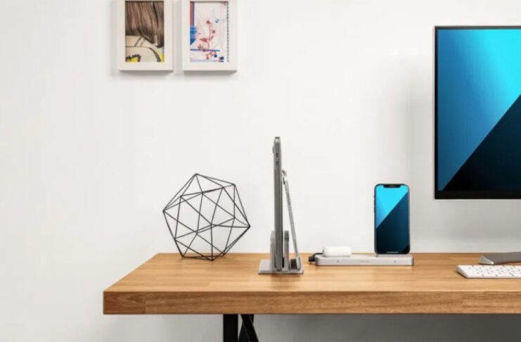 Ancora, la stazione include un supporto di ricarica Qi verticale per iPhone, nonché un pad di ricarica Qi per AirPods o altri dispositivi. Ci sono due alloggiamenti separati, uno progettato per contenere MacBook e un altro per iPad. Sul lato di StudioCaddy c’è una porta USB-A e una porta USB-C, l’ultima delle quali può fornire fino a 20W di potenza, secondo quanto dichiarato da The Verge .