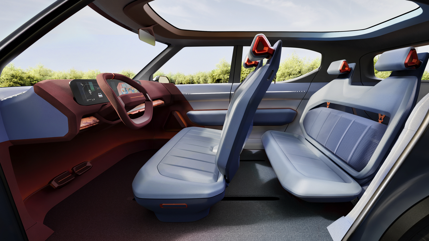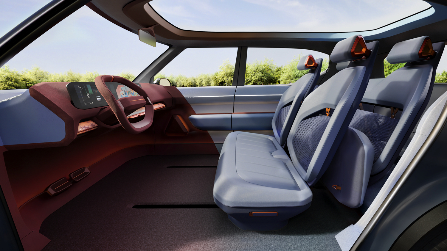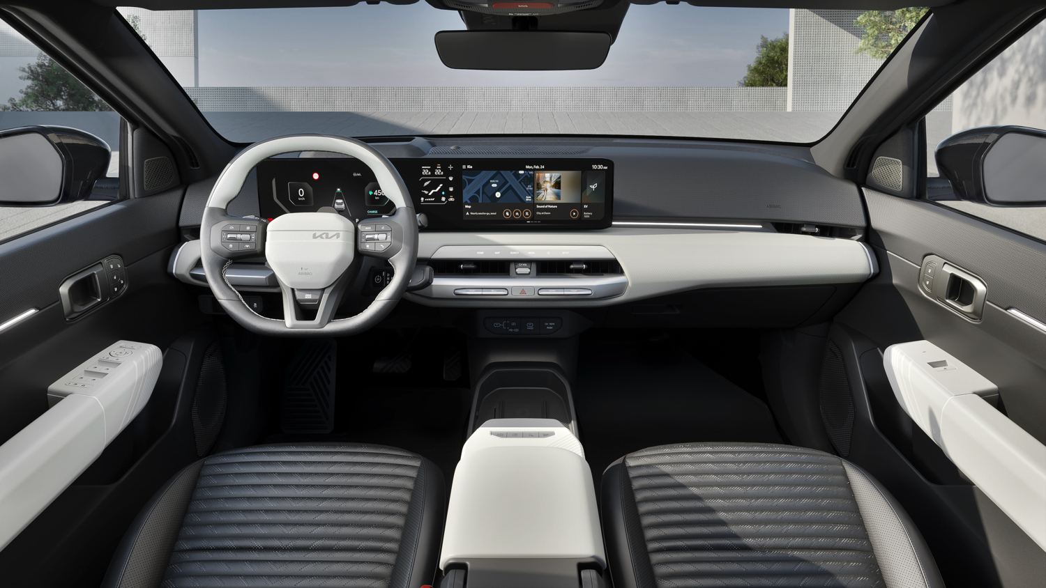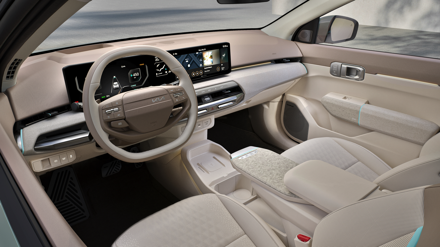 Progettata per lunghi viaggi con interni spaziosi, il cruscotto è dominato da un generoso schermo da 30 pollici ultra-wide suddiviso tra strumenti, infotainment e climatizzazione.