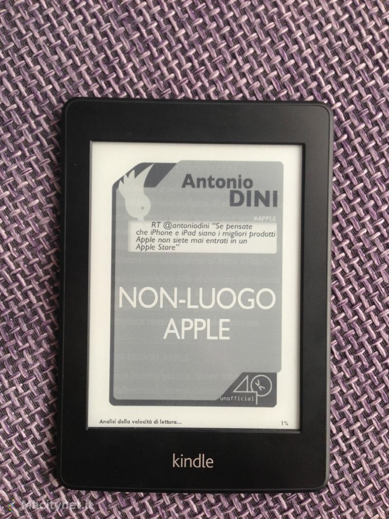 Eccoci al punto di forza del Paperwhite. Signore e signori, non c’è che dire: questo modello di Kindle fa quel che promette. Il pannello è più chiaro di quello dei Kindle tradizionali e sicuramente molto ben leggibile, con un contrasto migliorato del 25% e una densità di pixel maggiore di più del 60% rispetto agli altri Kindle. Visto la stagione invernale lo abbiamo provato più volte all’aperto senza mai riuscire però a esporci a una luminosità esterna molto forte: Milano rimane una città cupa e grigia durante i mesi invernali. Però, dal punto di vista della risposta ai raggi solari diretti siamo sicuri che la resa sia analoga a quella degli altri Kindle.