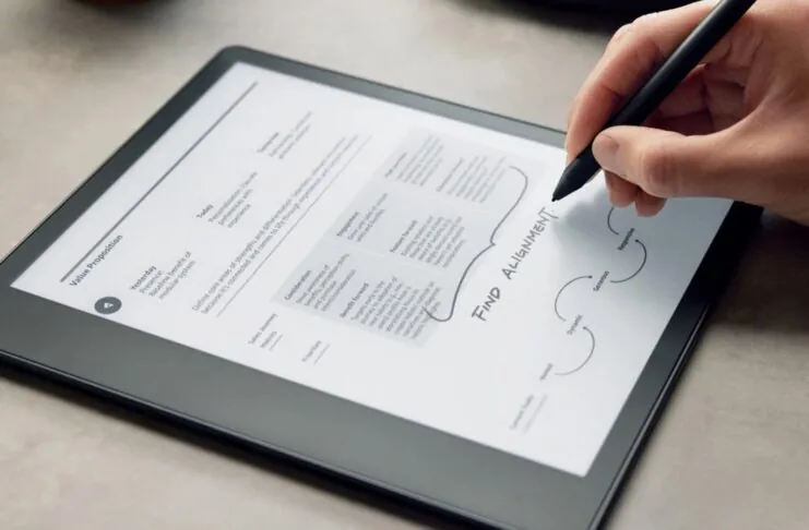 È appena arrivato e indubbiamente rivoluziona quel che si può fare con questo e-reader, il primo di Amazon che supporta il pennino per scriverci sopra come se fossero carta e penna, perché dalla semplice scrittura di note e taccuini adesso si passa agli appunti scritti direttamente sulle pagine di libri, riviste e documenti.