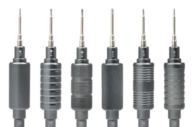 Le punte incluse sono Y0.6, 1.2, 2.5, T1, T2 e 0.8, un assortimento pensato per coprire la maggior parte delle viti speciali presenti nei dispositivi elettronici più comuni. Che si tratti di sostituire una batteria, accedere a una scheda logica o intervenire su componenti interni, questo kit offre quindi una copertura completa delle esigenze più frequenti.