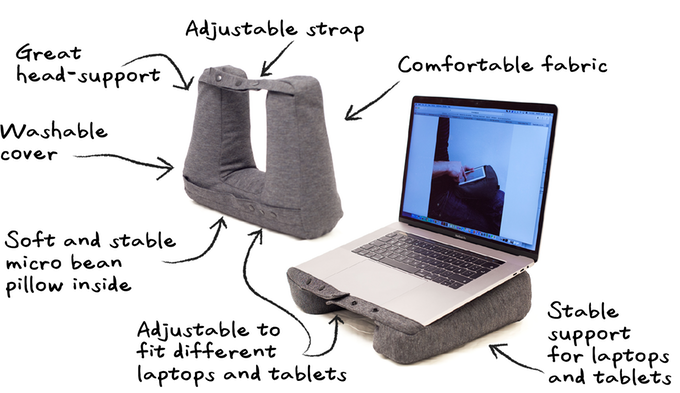 Chi ha affrontato lunghe trasferte in treno, aereo o pullman apprezza la comodità offerta da un cuscino da viaggio: l’idea geniale di Kneck è quella di poter usare lo stesso supporto non solo per la nostra testa ma anche per usare in modo più comodo il computer portatile o il tablet.