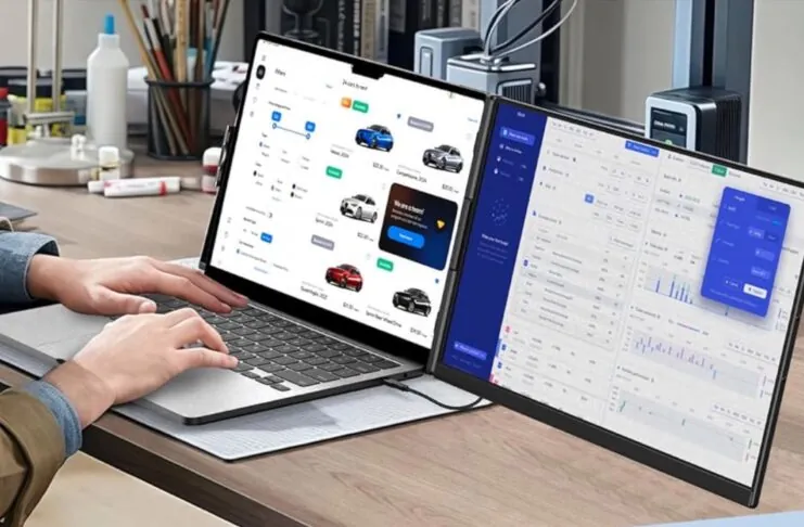 Quando si lavora al computer si può migliorare la produttività spostandosi su uno schermo più grande o, meglio ancora, affiancandone un secondo a quello principale. Ma in mobilità tutto questo diventa molto più difficile se non impossibile, a meno di affidarsi a una soluzione come quella offerta da Kwumsy S2, sostanzialmente un sistema di monitor che si affiancano saldamente a quello dei computer portatili. In questo modo lo spazio di lavoro può essere esteso anche quando si lavora al bar, in treno, in una caffetteria e in tutte quelle situazioni in cui è possibile raddoppiare o triplicare l’ingombro degli schermi del portatile. Gli schermi aggiuntivi del sistema cui facciamo riferimento in questo articolo montano un pannello LCD con risoluzione Full HD a 1080p, un refresh rate a 60 Hz e un angolo di visione di 178 gradi, abbastanza performanti per poterci spostare applicazioni e finestre secondarie a cui si sta lavorando in un dato momento.