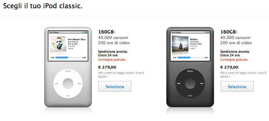 L’era dell’iPod Classic è finita, ma per ora solo per Apple. Nonostante sia sparito dagli scaffali degli Apple Store online, per chi volesse mettere mano sulla sesta generazione dello storico lettore MP3 ideato da Steve Jobs c’è ancora una possibilità. Su Amazon infatti è attualmente possibile acquistare la versione nera o argento dell’iPod Classic da 160 GB ad un prezzo leggermente inferiore di quello di listino Apple di pochi giorni fa.