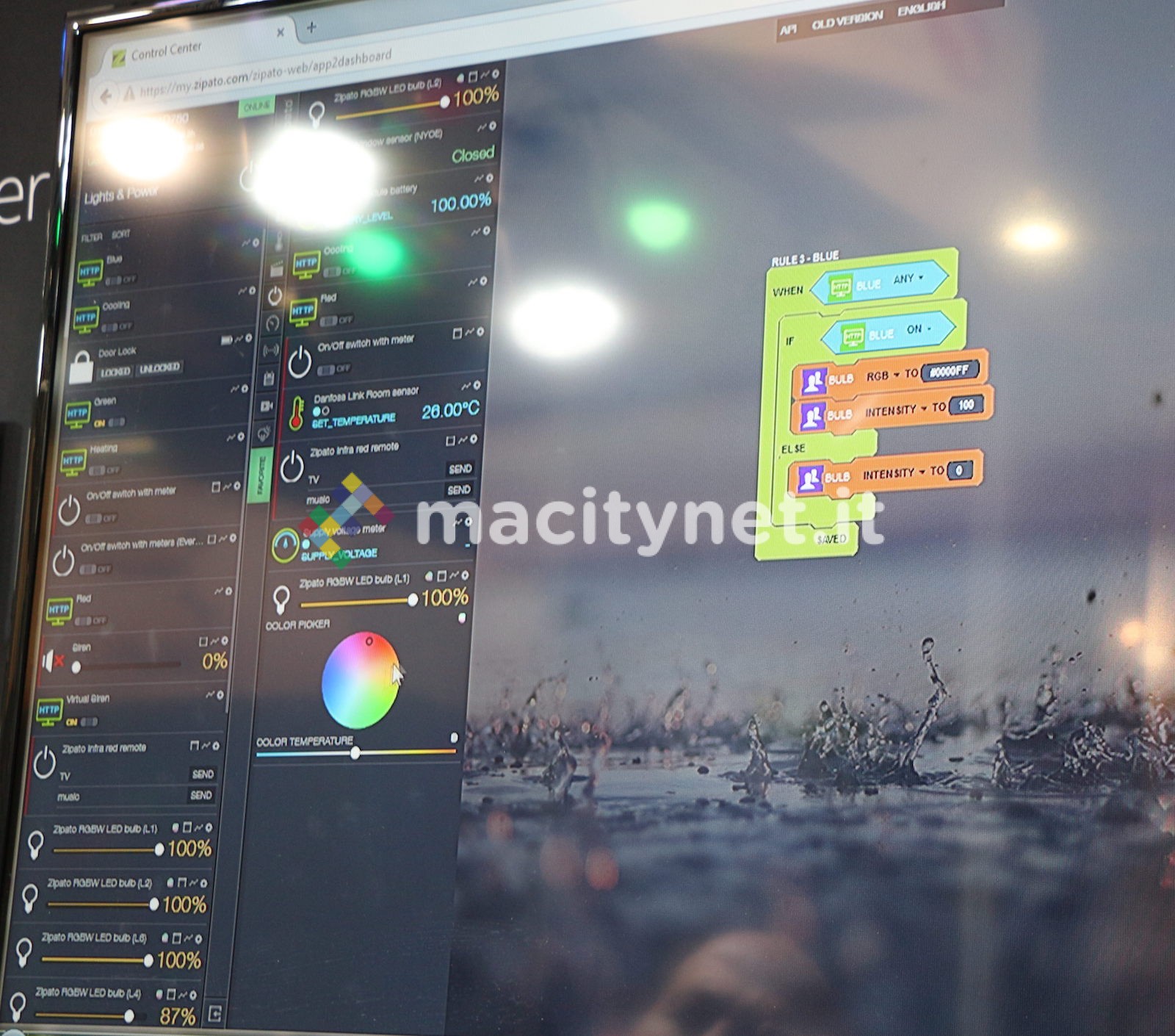 A proposito di gateway, l’azienda ha presentato sia Zipabox, originalissima e collaudata soluzione modulare che può aggiungere alle capacità di gestione Z-wave del modulo principale su slitta DIN tante altri protocolli domotici come ZigBee, KNX ed EnOcean oltre a moduli di backup, GSM, sicurezza… sia soluzioni più economiche ed entry level basate su prodotti OEM quali ZipaMiniTV un box Android TV + Zwave; Zipacam, una Telecamera + Zwave; Zipamini, un gateway compatto con solo Z-wave e infine ZipaTablet, un tablet/touchpanel con Z-wave a bordo, tutti gestibili con il software di creazione delle regole di cui abbiamo parlato qui sopra.