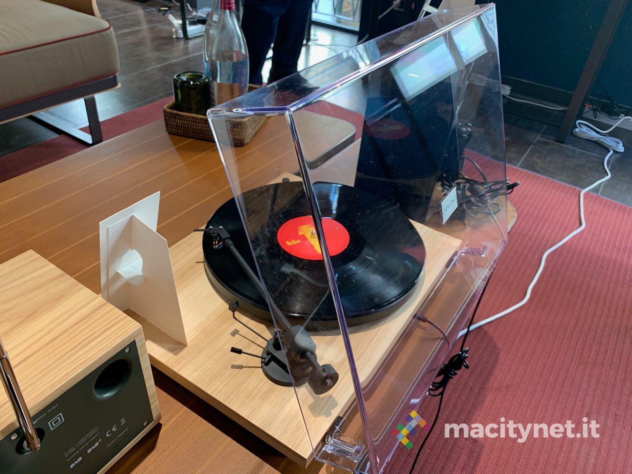 Così tra i mille impegni tra cui passa rapidamente, inizia a mostrarci Come funziona Como Audio Bluetooth Turntable e iniziamo ad ascoltare insieme la musica riprodotta su Como Audio Musica. Una musica calda, come solo i dischi in vinile offrono, con audio corposo, frequenze perfettamente udibili, corposa e piacevole, come raramente capita di ascoltare.