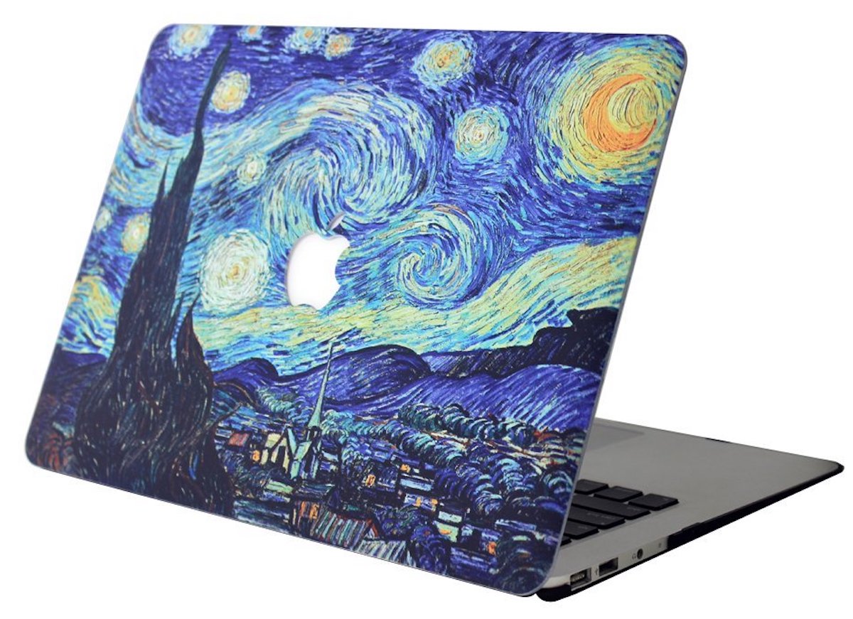 Ci sono le custodie artistiche, per gli appassionati d’arte e per chi desidera colorare le proprio giornate dando un tocco d’autore al proprio Macbook, come quella di Ausmix dedicata alla Notte stellata di Van Gogh. Tra le pennellate dell’impressionista, la cover lascia lo spazio alla mela morsicata, rendendo la custodia perfetta per chi non vuole rinunciare a mostrare il logo di Cupertino, anche se personalizzato con la mano di un artista. La custodia di Ausmix dedicata a Van Gogh, disponibile per MacBook Air 13 pollici, si acquista su Amazon. E’ possibile anche acquistarla per altri modelli di MacBook. A partire da questa pagina.