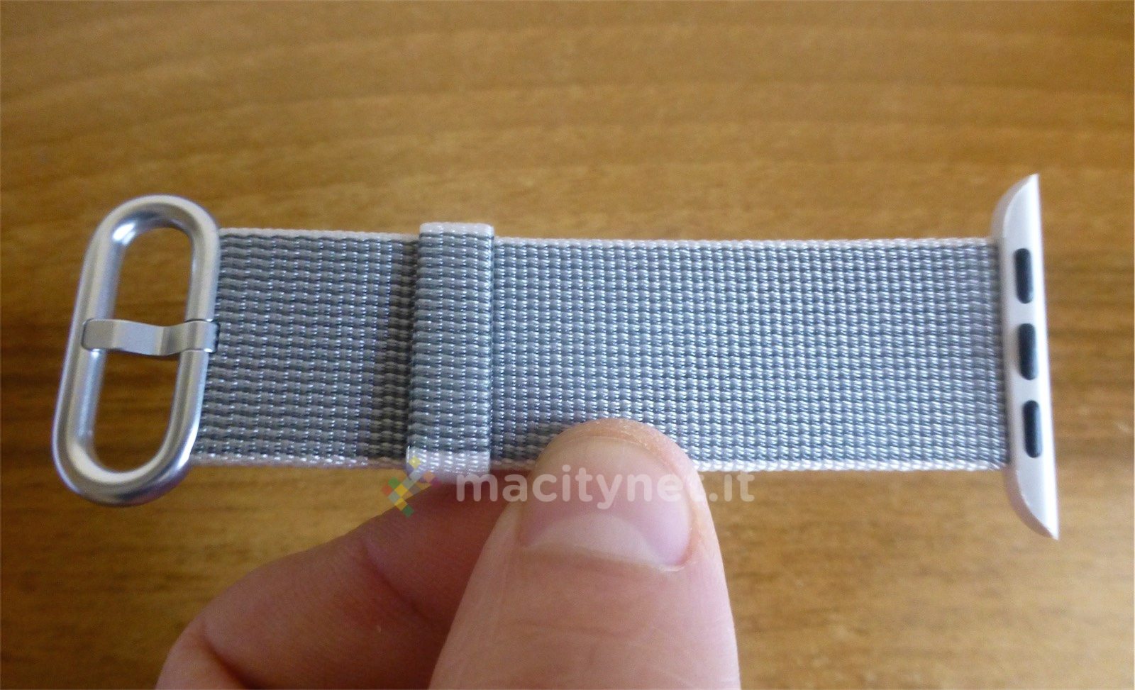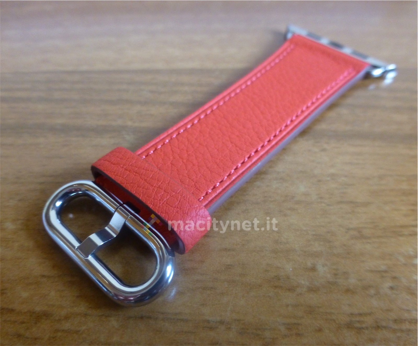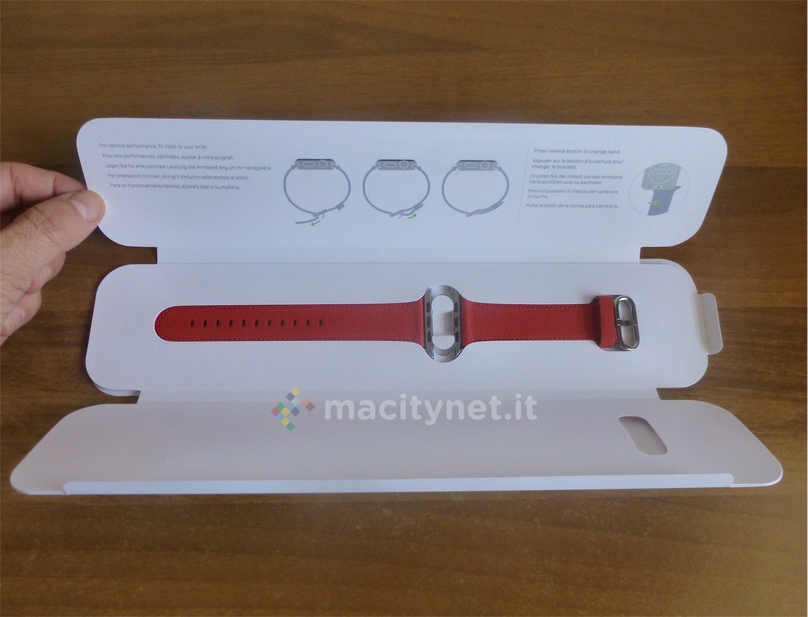 La fibbia è la stessa del modello in pelle “classico”, che Apple ha rinnovato aggiungendo anche qui vari colori. Abbiamo provato sia la versione rossa che quella in nero, entrambe eleganti e ben adatte a un uso meno sportivo dell’orologio. Più per l’ufficio o per la sera che non per la spiaggia, insomma.