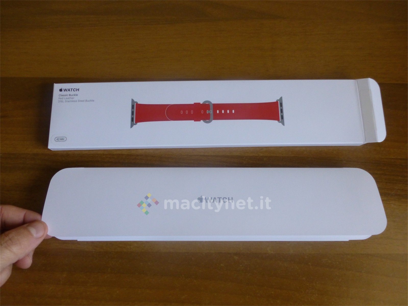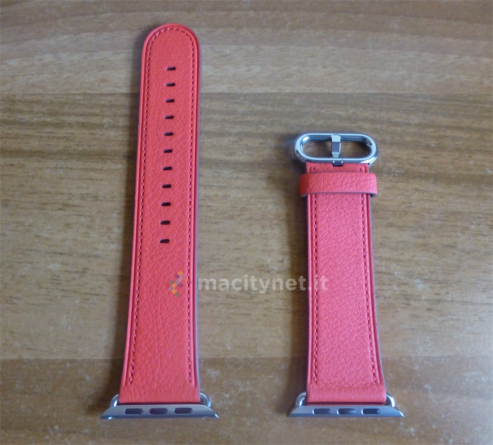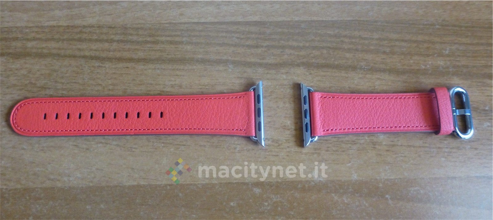 La fibbia è la stessa del modello in pelle “classico”, che Apple ha rinnovato aggiungendo anche qui vari colori. Abbiamo provato sia la versione rossa che quella in nero, entrambe eleganti e ben adatte a un uso meno sportivo dell’orologio. Più per l’ufficio o per la sera che non per la spiaggia, insomma.