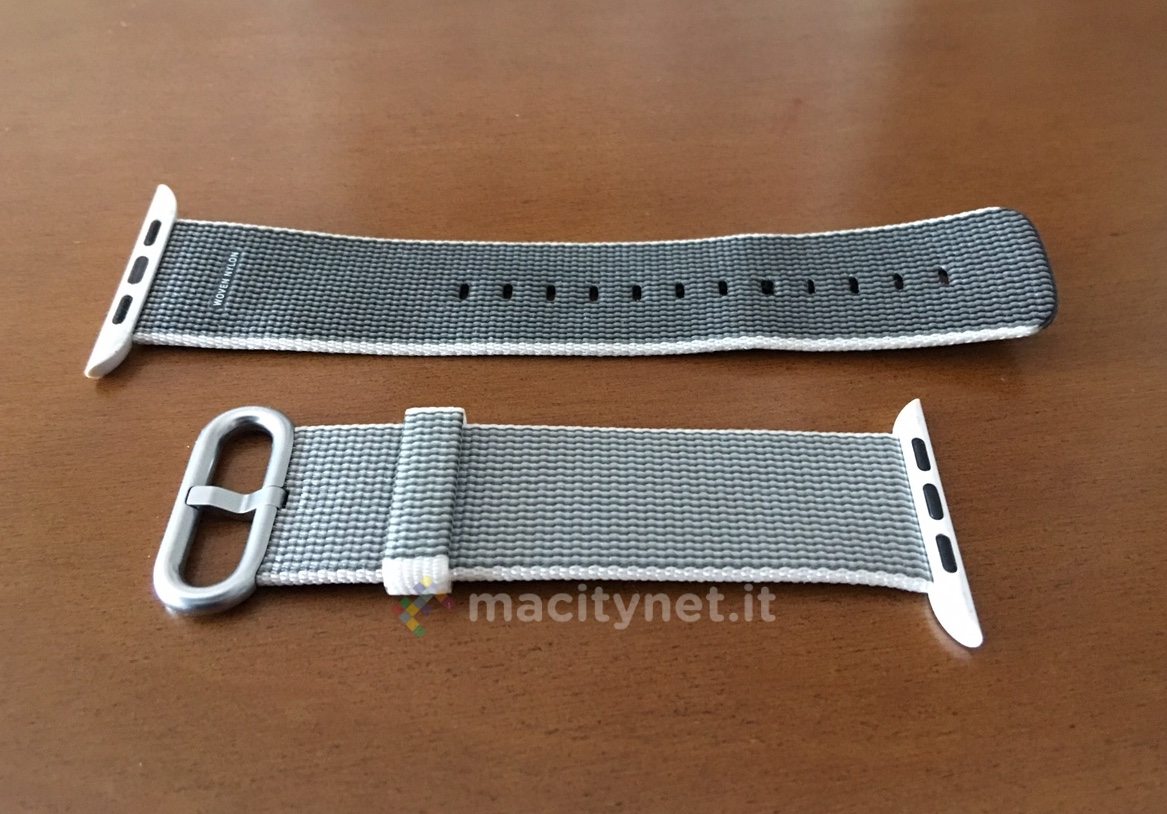 Vediamo prima la novità, che peraltro è quella già al polso del cronista. Si tratta di una serie di cinque nuovi cinturini in nylon tessuto a quadruplo strato che sono una benedizione per l’estate ormai imminente. Infatti il nylon ha non solo caratteristiche di resistenza notevole ma anche un ottimo rapporto con l’acqua (sia salmastra che di piscina o della doccia e anche con il sudore), con la sabbia e soprattutto con il sole. Quindi, un cinturino elegante e vivace, con un mix di colori abbastanza visibili (ma c’è anche il modello nero ma si notano di più quello celeste, quello rosa e quello giallo) che serve per il tempo libero anche se può avere tranquillamente un uso “professionale”. Chi scrive utilizza quotidianamente un Apple Watch 42mm color argento e ha trovato più che gradevole l’accostamento con il colore “perla”. La dizione del cinturino è infatti Nylon Band Pearl con fibbia in acciaio inossidabile anallergico.