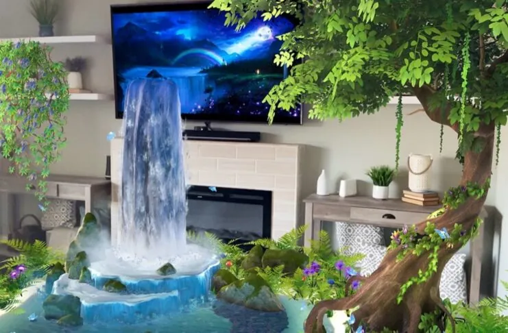Infatti, inquadrando il televisore con l’iPhone mentre si usa l’app, appare una scena che pare magica: dal televisore esce una cascata di acqua che rivela un’isola magica, una baia e un albero. Un pcicolo genio luminoso vola intorno mentre i delfini trasparenti balzano fuori dall’acqua e delle piccole farfalle viola svolazzano da tutte le parti.