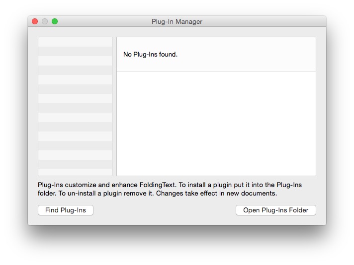 Infine, l’architettura di questo software è particolare perché non ha preferenze ma al loro posto c’è la gestione dei plug-in. I quali consentono di fare molte più cose, visto che la comunità di appassionati di FoldingText è piuttosto ampia. Attualmente meno vivace che in passato, ma decisamente ancora molto ampia. Vediamo però in concreto come funziona il software.