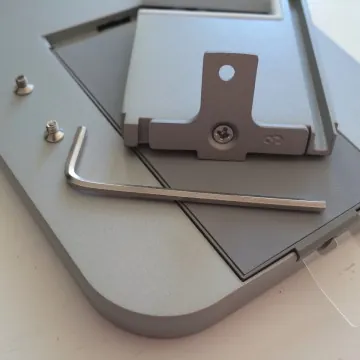 La pesante basetta in metallo (il peso totale del supporto è di 189 Grammi) è l’elemento da cui partire per il montaggio: su questa viene collegato tramite due viti con testa a brugola il sostegno che viene posizionato con una inclinazione di 73° e reca il foro per incastrare il pod terminale del cavo di alimentazione. L’operazione di montaggio è semplice ma la chiave ad “L” è un po’ troppo lunga e occorre lavorare fuori piombo con una piccola difficoltà nel posizionamento corretto sulle viti di assemblaggio ma con un po’ di pazienza in pochissimi istanti siamo in grado di rendere solidali le due parti.