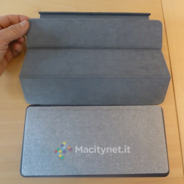 Una cosa della tastiera smart di Apple colpisce: quando è ripiegata e fa da cover frontale all’iPad è estremamente compatta. Si percepisce ovviamente la “gobba” dove raddoppia per contenere piegata su se stessa la parte con i tasti, ma in realtà sporge appena. Anzi, nel portarla in giro o nel riporla in una borsa non c’è assolutamente alcun problema, neanche di rischi di apertura casuale. Questo è un aspetto positivo.