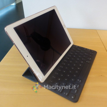 Nell’uso, la precisione della soluzione trovata da Apple per l’iPad Air 9,7 è notevole e funzionale: i tasti sono precisi e, nonostante il meccanismo e la breve corsa, rispondono come devono molto bene. Stancano poco le dita e, se si prende l’abitudine a scrivere senza guardare, funzionano più o meno come funzionerebbe una tastiera tradizionale. Unico vero inceppo, il maledetto tasto Invio che “sballa” un po’ tutto il quadrante dell’anulare e mignolo della mano destra.