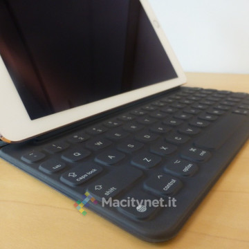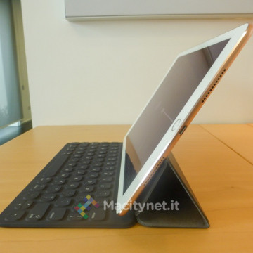 A riguardo della connessione: la tastiera è il primo accessorio per iPad Pro 9,7 che utilizza lo Smart Connector. Apple aveva lasciato intendere già al lancio di iPad Pro 12,9 che ci sarebbero stati altri accessori per questo nuovo connettore, ma in realtà non si è visto niente né si sa niente di accessori di Apple o di terze parti in arrivo. Quel che si capisce bene è che la tastiera copre fisiologicamente il bordo dell’iPad di entrambe le dimensioni, chiedendo di avere ad esempio una cover posteriore di protezione che lasci libero quel lato.