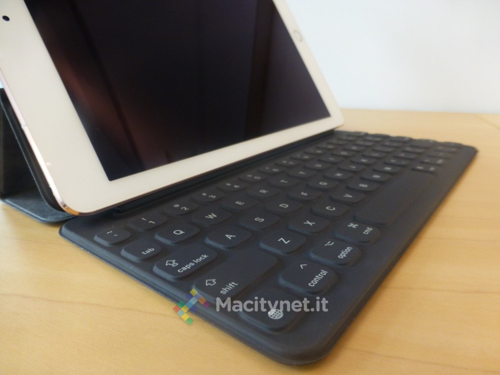 Concentriamoci brevemente su Smart Keyboard di iPad Pro da 9,7 pollici e lasciamo perdere quindi i paragoni con quella del fratello maggiore. Consideriamo cioè l’iPad a se stante e vediamo come va la nuova tastiera.