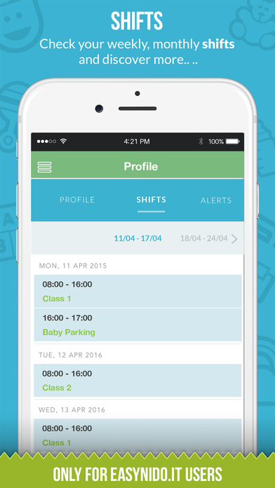 Un sistema di gestione come questo non può che far risparmiare tempo allo staff della scuola, che avrà a disposizione uno strumento semplice da utilizzare e completo attraverso cui potranno aggiornare il diario di bordo di ciascun bimbo, segnare presenze, laboratori, pasti, attività, comunicare con i genitori, consultare in tempo reale i turni di lavoro.