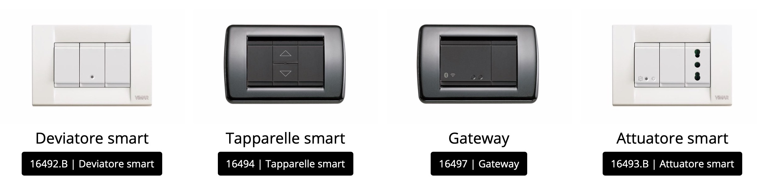 Vi ricordiamo che nelle settimane scorse Vimar ha messo in commercio 3 nuovi componenti per impianti smart installabili indipendentemente dalla serie civile che avete in casa (Vimar o terze parti), nelle scatole 503 oppure nelle scatole di derivazione da abbinare al gateway e configurabili dall’installatore tramite l’app VIEW Wireless.