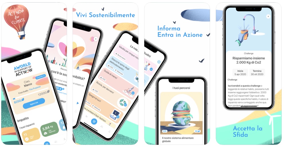 L’app AWorld in support of ActNow può essere scaricata gratuitamente da questo link ad App Store.