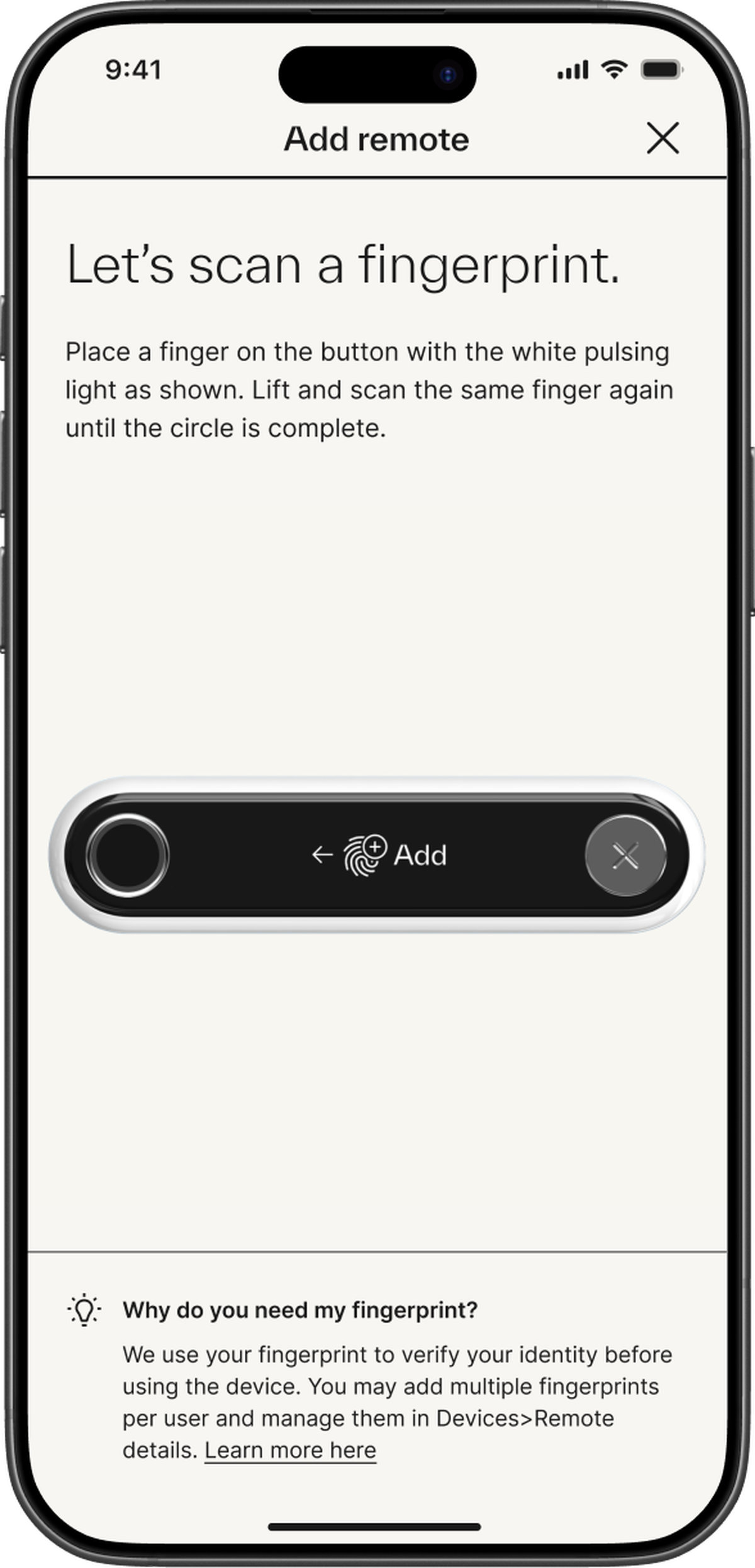 Nella dotazione è incluso una telecomando Bluetooth, da applicare alla parete, dotato di sensore di impronte digitali per distinguere tra utente, familiari e risparmiare il monitoraggio degli ospiti.