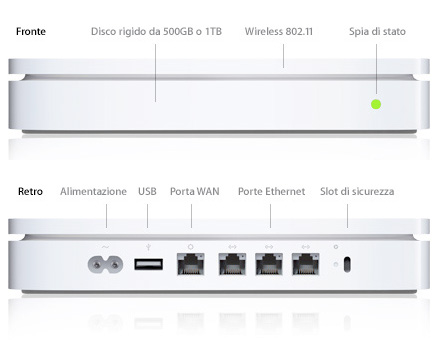 Infine ricordiamo la funzione Torna al mio Mac: tra gli addetti ai lavori questa funzione è definita come un file server Web. Ma nel linguaggio amichevole di Cupertino, questa funzione permette di accedere ai dati e ai documenti memorizzati nel disco fisso di Time Capsule, da qualsiasi computer connesso al Web ovunque ci troviamo. Per disporre di questa pratica funzione occorre essere abbonati al servizio MobileMe.