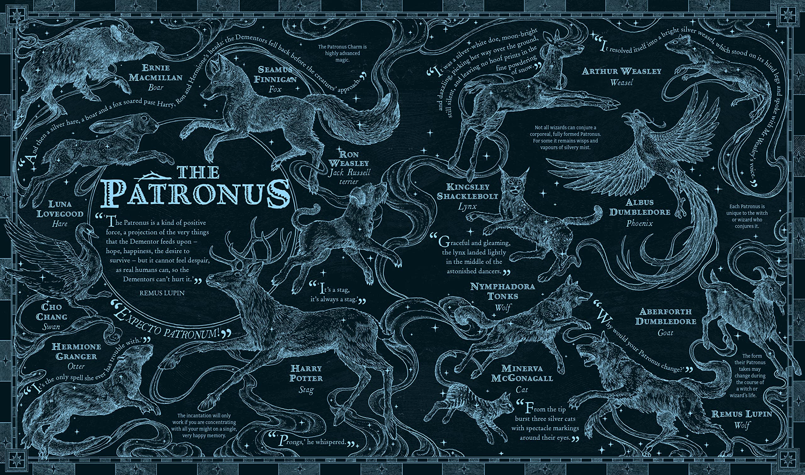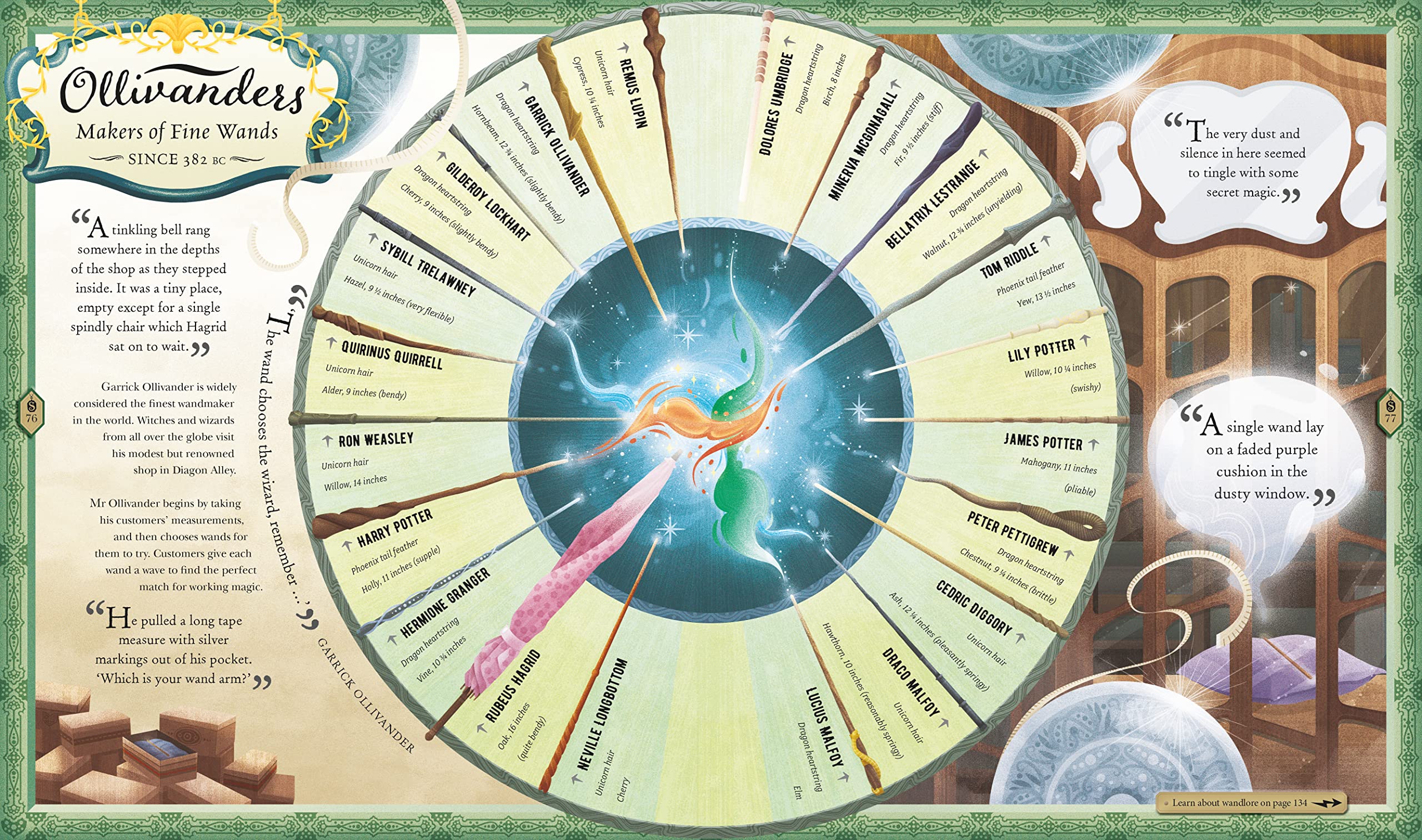Le tavole mostrate in anteprima offrono un assaggio di quel che si può sfogliare, tra illustrazioni dei Patronus (i guardiani anti-dissennatore dei maghi) e delle bacchette utilizzate dai principali personaggi della saga che ne svelano dettagli e segreti.