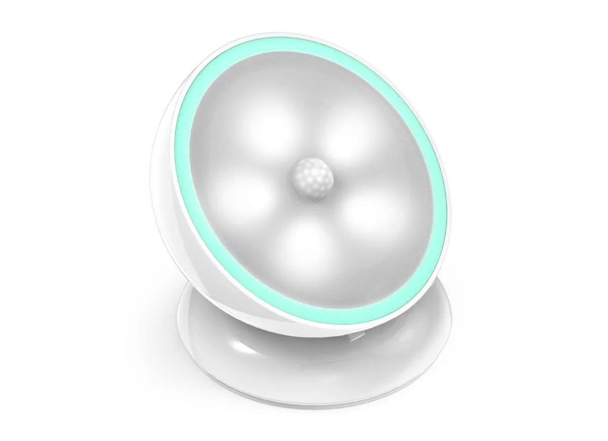 Dalla forma di una mezza sfera, si aggancia e si sgancia in un sol colpo a qualsiasi superficie attraverso una base magnetica inclusa in confezione (fissabile agevolmente grazie ad un adesivo 3M o tramite viti a mensole e pareti). Incorpora 5 luci LED, offre due distinte modalità di illuminazione: può restare sempre accesa, oppure si può attivare non appena riconosce un movimento attraverso l’apposito sensore.
