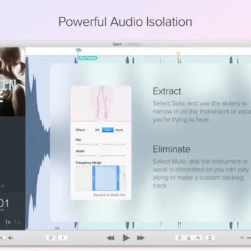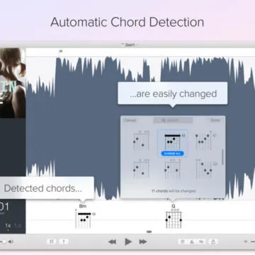 Anche nella versione iOS troviamo l’editor con lo spettrogramma, le funzioni per appuntare aree e creare loop, funzioni per aggiungere accordi, strumenti per l’equalizzazione del brano, filtri per eliminare la voce, funzionalità di sincronizzazione con iCloud per avere gli stessi brani sui dispositivi iOS e Mac. Non sono presenti tutte le funzioni che si trovano sulla versione Mac, anche per limiti intrinseci che impediscono di elaborare sonorità più complesse, ma le più importanti ci sono tutte.