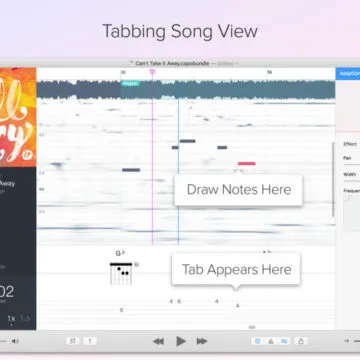 Con il software Capo per Mac è possibile eseguire in loop una sezione, modificando in modo accurato inizio e fine delle ripetizioni e salvare i progetti in file. Il brano è mostrato sotto forma di spettrogramma, permettendo di visualizzare a colpo d’occhio tutto ciò che viene suonato o evidenziare alcune parti. I suoni che ci interessano possono essere riportati sotto forma di tablatura consentendo la veloce trascrizione di parti. L’applicazione è in grado di rivelare e inserire i nomi degli accordi, offrendo la possibilità di intervenire manualmente dove gli algoritmi del software dovessero sbagliare.