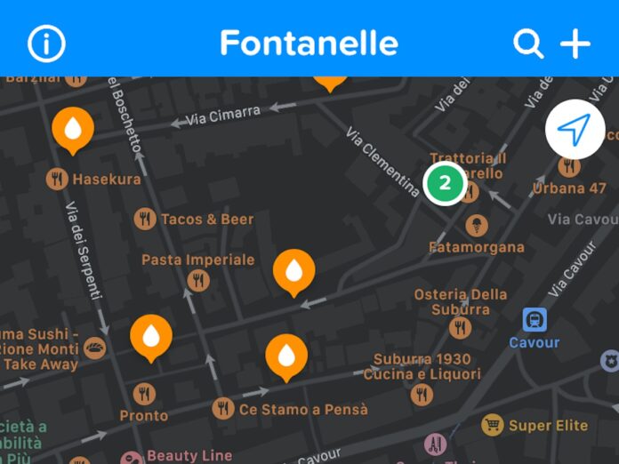 L’app per iPhone si chiama Fontanelle d’acqua potabile” e sta avendo un riscontro molto positivo. Consente di individuare facilmente ed in maniera intuitiva le sorgenti d’acqua pubblica dislocate nel mondo, e sembra che sia la più utilizzata a livello mondiale.