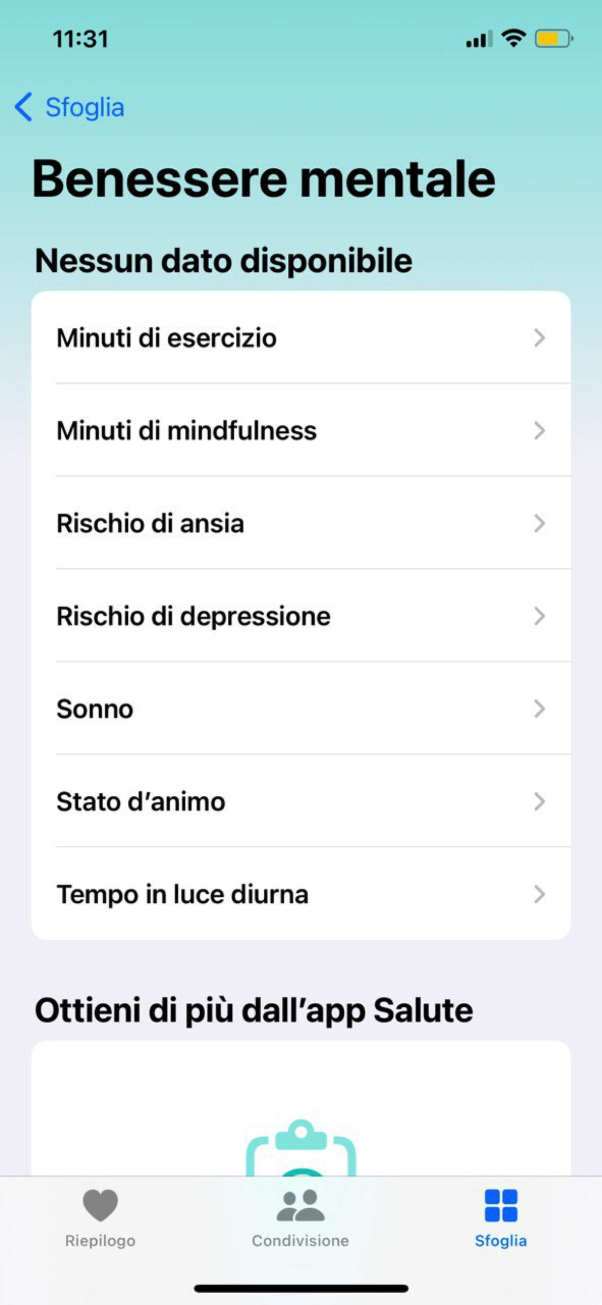 Con iOS 17 l’app Salute di Apple si infarcisce di una nuova funzione dedicata al monitoraggio dell’umore, così da tenere una traccia del proprio benessere nel tempo. Per accedere a questa novità e registrare lo stato d’animo del momento non dovete far altro che aprire l’app, cliccare su Sfoglia e selezionare la voce Benessere mentale.