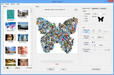 Disponibile su Mac, Windows, Linux e iOS, Shape Collage crea automaticamente i collage fotografici, sempre con forme differenti, necessitando di pochi secondi. E’ possibile scegliere tra collage a forma di rettangolo, cuore, o anche di testi, il tutto con pochi clic o tap. Lo strumento automatizza gran parte del processo in modo che l’utente debba scegliere solo una forma, selezionare le foto e lasciare che Shape Collage faccia il resto.