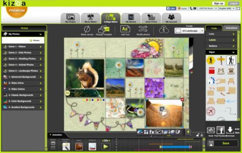 E’ probabilmente tra i programmi più semplici da utilizzare, ma non rinuncia a funzionalità gratuite piuttosto interessanti. Kizoa vanta, anzitutto, decine di modelli già pronti da utilizzare, con possibilità di creare un laoyout personalizzato. Funziona direttamente su web, e oltre alle funzioni base gratuita offre abbonamenti Premium da acquistare una tantum. I modelli da utilizzare per comporre le proprie foto sono sia statici, che animati, pronti per qualunque occasione. Dopo aver creato un proprio modello sarà possibile aggiungere foto, GIF, video, testo e persino adesivi. L’abbonamento a Kinoa include anche l’accesso a un editor film e uno di foto, in modo da poter editare anche da browser, in qualsiasi luogo ci si trovi.