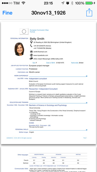 Creare il proprio curriculum con iPhone e iPad si può con iCV, app italiana selezionata anche da iTunes Store tra le migliori app dell’anno. iCV consente di creare il proprio curriculum in formato europeo, esportarlo in formato PDF, associarlo ad una lettera di accompagnamento, inviarlo via mail o stamparlo con AirPrint, personalizzarlo scegliendo i font e importando le informazioni dal proprio profilo LinkedIn.