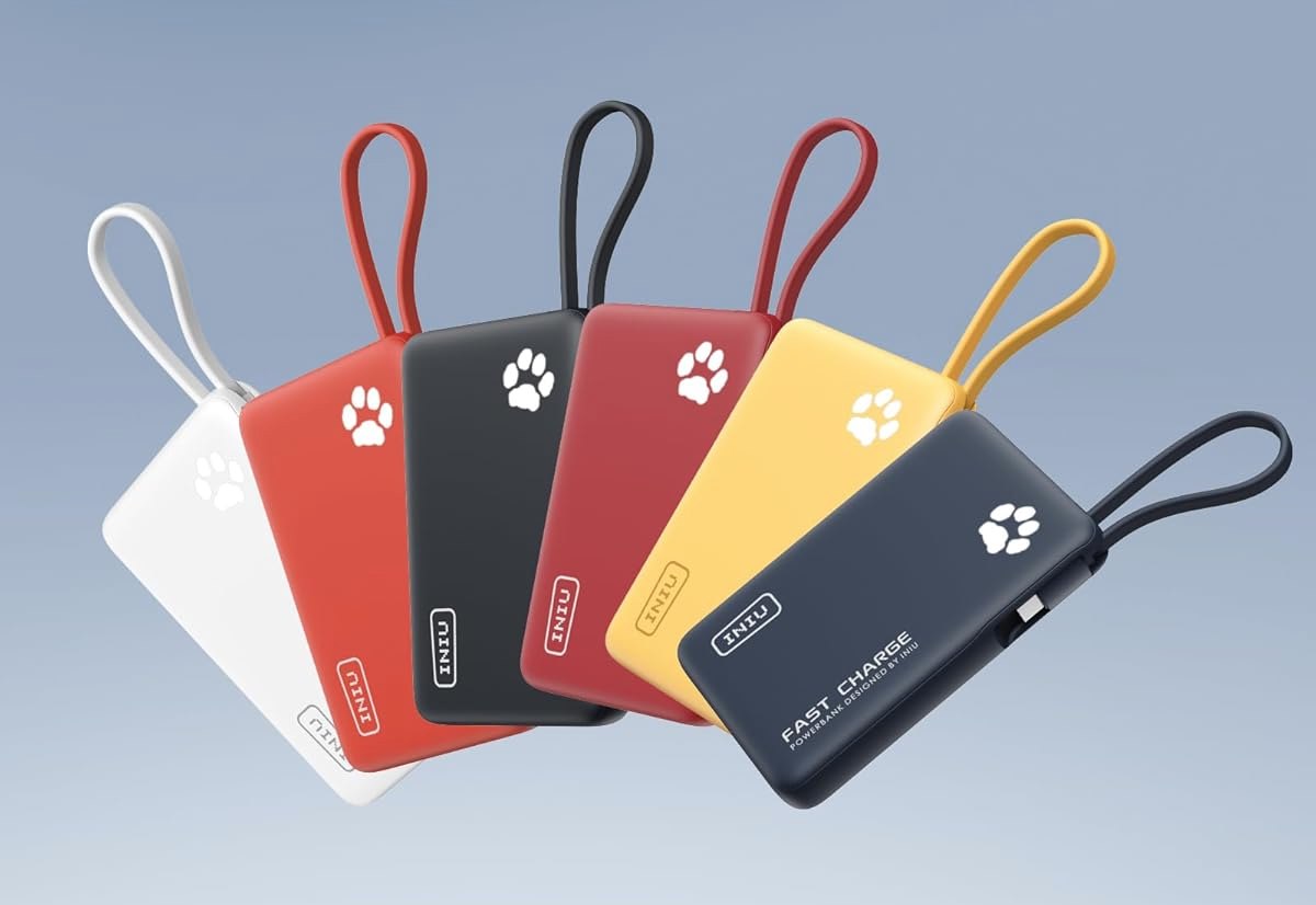 Quesa batteria di INIU Power Bank con Cavo Integrato ha pure essa come tutte le altre il cavo integrato, che elimina la necessità di accessori esterni. Ha una potenza di 20W che consente ricariche mediamente rapide, mentre la batteria 10000mAh offre autonomia per più cicli. Qui il vantaggio è determinato dal design ultrasottile che ne facilita il trasporto, e il sistema di protezione multipla tutela i dispositivi collegati. Qui abbiamo pure una porta USB-A e una porta USB-. Disponibile in vari colori