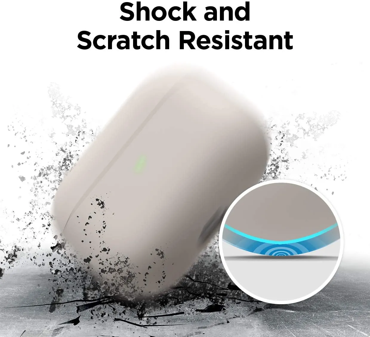 È realizzata con un polimero che ammortizza gli urti; gli angoli Air Guard proteggono la custodia di ricarica anche da cadute e urti di forte impatto. Il coperchio cha una chiusura magnetica con adattamento di precisione combinato con 4 forti magneti che crea una presa sicura e salda, in modo da non doversi mai preoccupare che il coperchio si allenti o che gli AirPods Pro si aprano nel momento sbagliato.