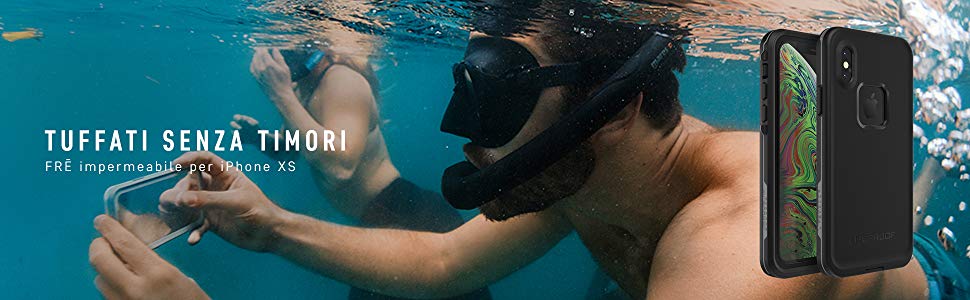 Si avvicina l’estate e la voglia di portare iPhone XS anche a mare non mancherà di certo. Per proteggerlo dalle mani salate o sporche di sabbia, ma anche per immergerlo in acqua, ecco le cover LifeProof. Naturalmente sono più ingombranti delle normali custodie per iPhone, ma sono certificate IP 68, quindi offrono massima protezione contro i La tecnologia FRĒ 360 offre protezione completa e accesso antigraffio all’iPhone, che rimane protetto da schizzi d’acqua, sporco, neve e cadute. La fotocamera anteriore resta disponibile per gli scatti selfie, mentre quella posteriore è protetta per garantire la massima definizione a ogni scatto. Tutte le custodie sono progettate con il sistema Sound Enhancement System, che amplifica l’audio degli altoparlanti integrati, per una migliore esperienza di ascolto in ambienti rumorosi.