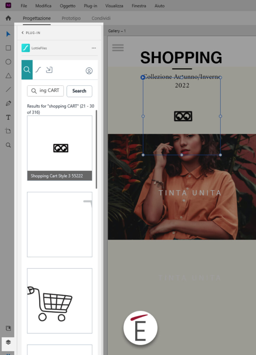 Esattamente come se fosse un’immagine (o un file mp4) basta fare un drag and drop del file LOTTIE nel progetto di XD per caricare l’animazione. Nel pannello delle impostazioni di destra potete scegliere il comportamento che l’animazione lottie deve avere, ad esempio, se deve essere riprodotta dopo un tap/click oppure mandata in playback automatico. L’animazione Lottie in XD può essere scalata senza problemi (il formato garantisce risultati cristallini a prova di qualunque ridimensionamento). In Adobe XD potete anche trovare una plugin ad hoc dalla quale scegliere migliaia di animazioni gratuite da inserire nel tuo progetto XD. Si tratta della plugin LottieFiles for Adobe XD.