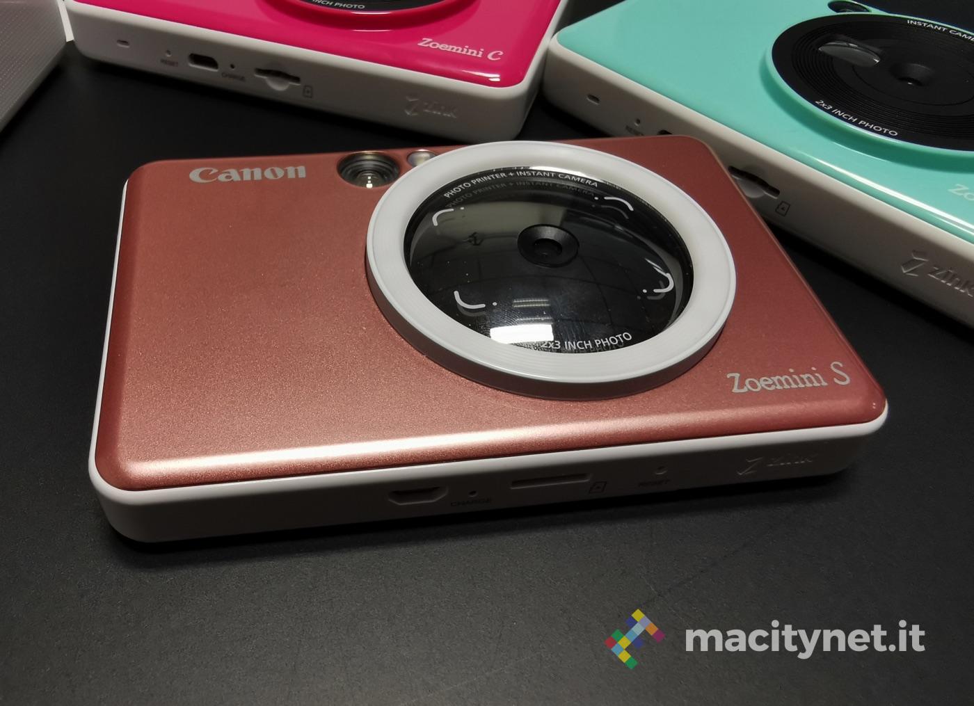 Il modello più dotato è Canon Zoemini S che mantiene le dimensioni della versione C ma è dotata di un sensore da 8 megapixel, un ampio specchio anteriore, una luce LED circolare per i ritratti e connettività Bluetooth per scattare da remoto tramite dispositivo mobile e relativa app.