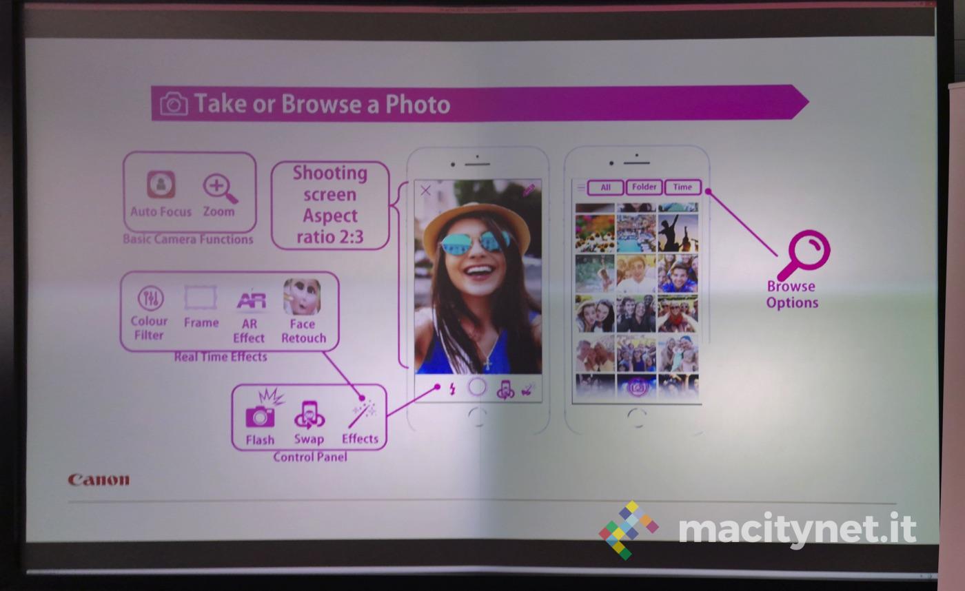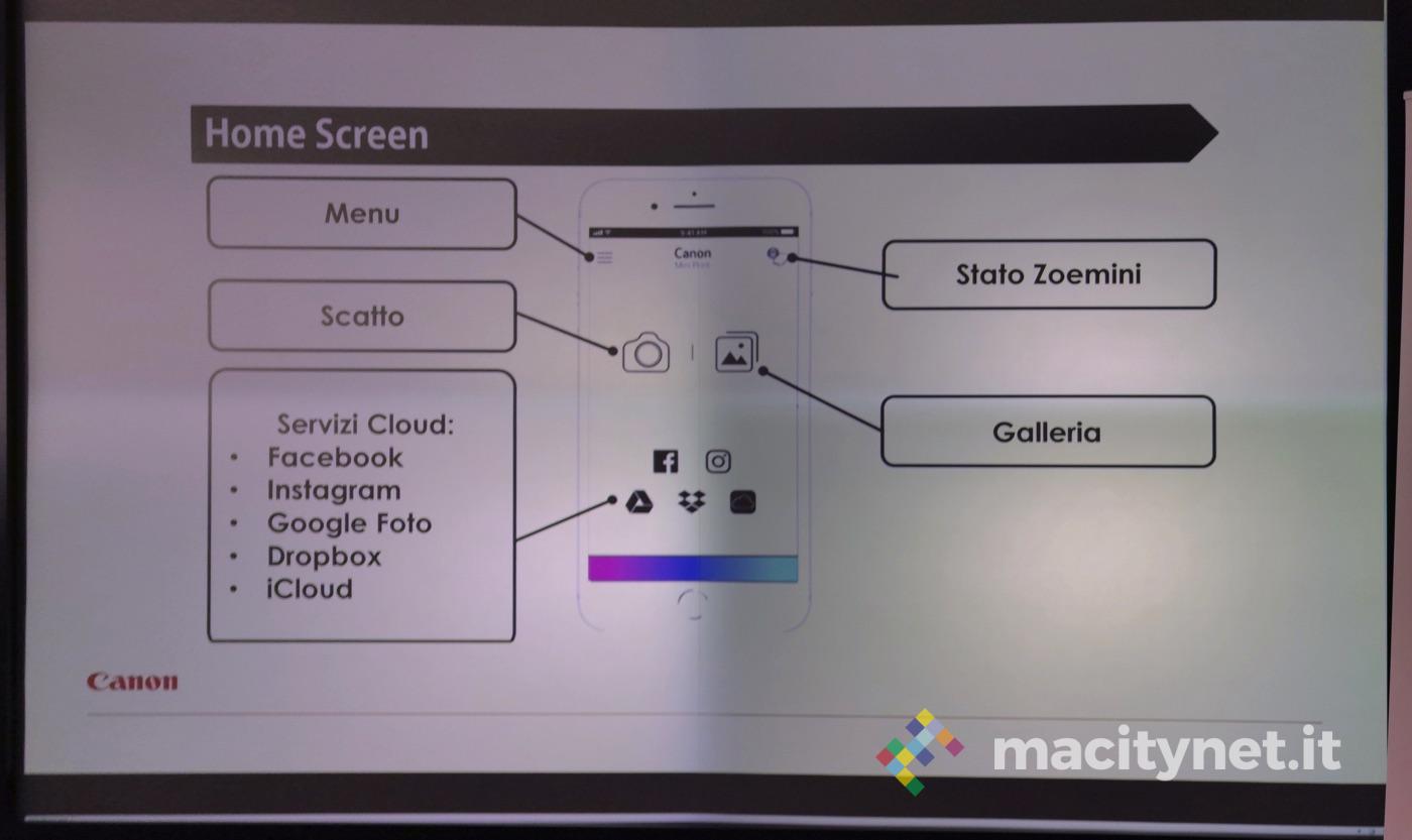 Con l’applicazione Canon Mini Print (gratuita su App Store iOS e Google Play – Android), l’utente può modificare gli scatti effettuati con il proprio dispositivo smart applicando filtri e cornici e inviarli in stampa tramite Bluetooth a Zoemini S.